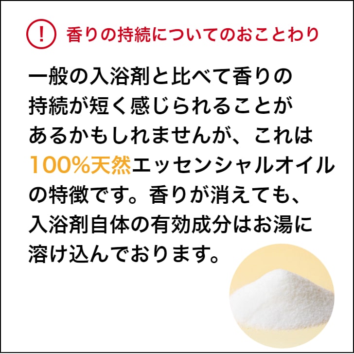 Add 25g (approximately half a capful) to your home's bath water (approximately 180L), stir well, and take a bath.