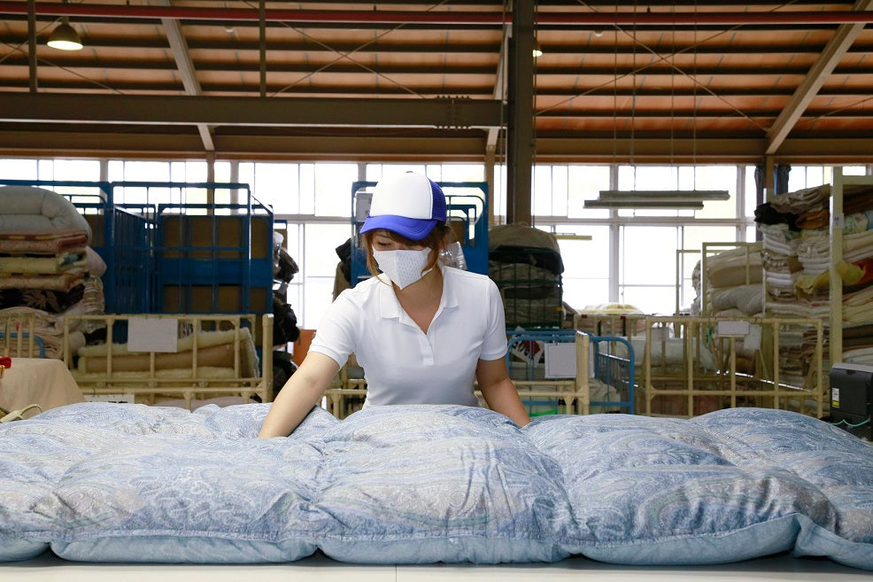 The futons are washed at Maruhachi Group's futon cleaning factory. After the futon arrives at the factory, it is washed and delivered two weeks later.
