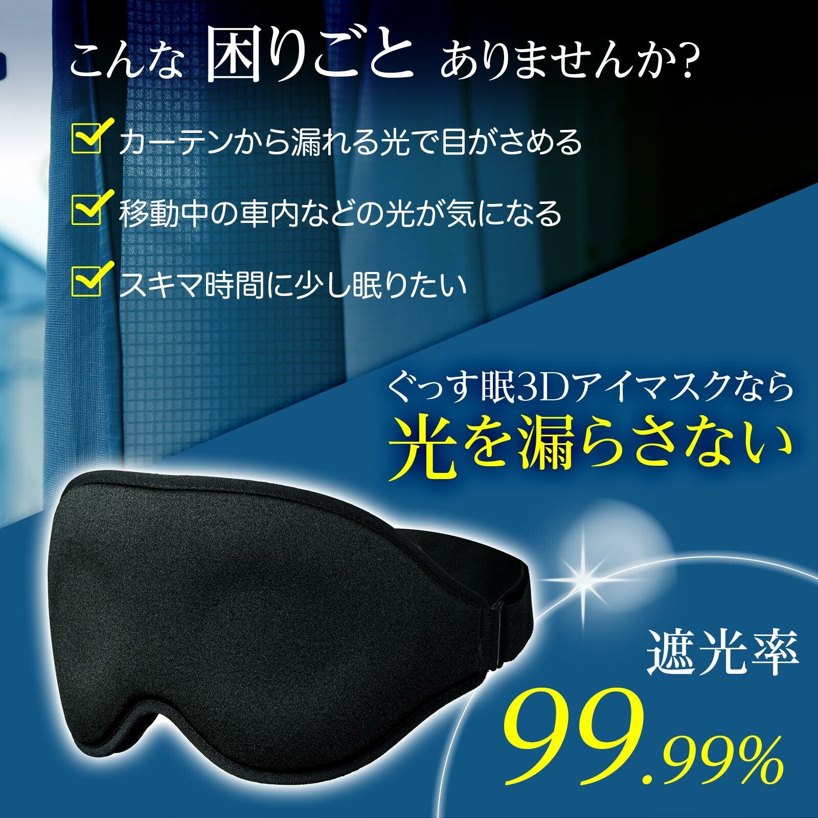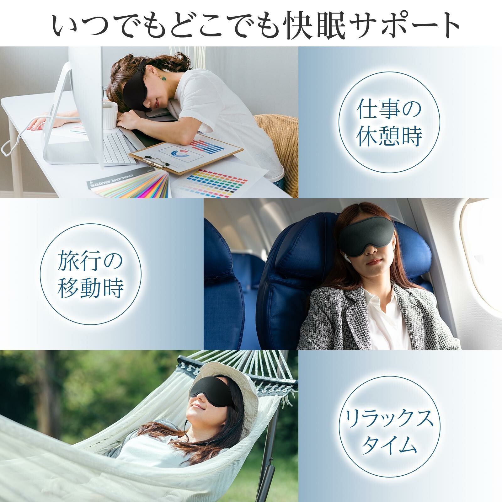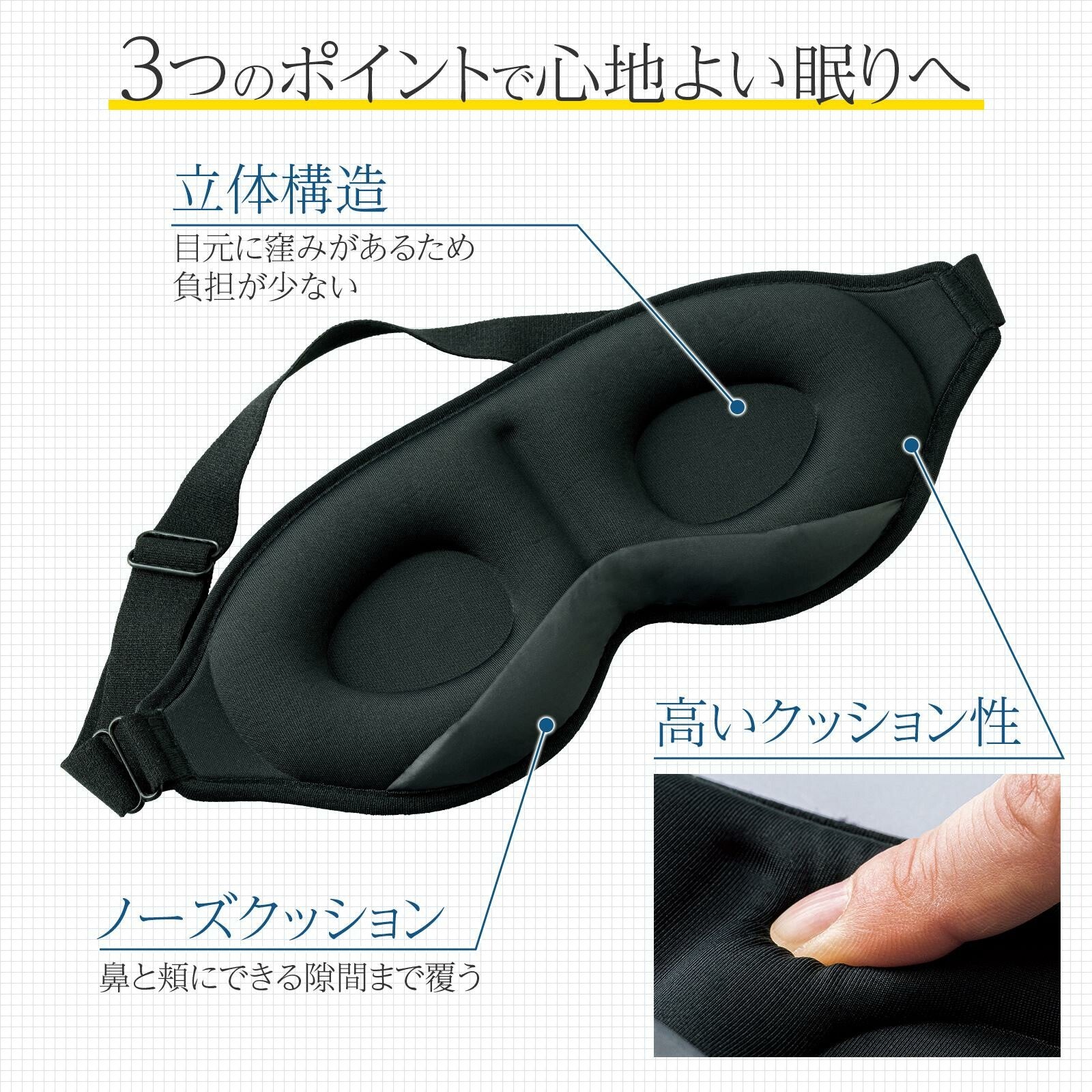 夜間寝るときにも、早朝覚醒の時にも、お昼寝、仮眠の時にも、旅行にもっていっても重宝する3Dアイマスクです。