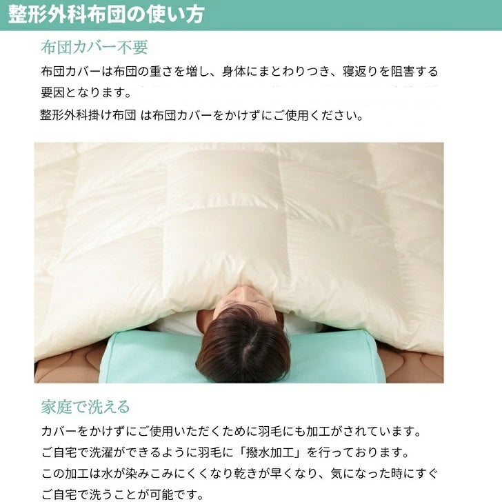 山田朱織医師が寝返りのための”かけふとん”を開発いたしました。整形外科枕、整形外科しきふとんシリーズとして自信を持ってご提案する機能性かけふとん、「整形外科かけふとん」です。